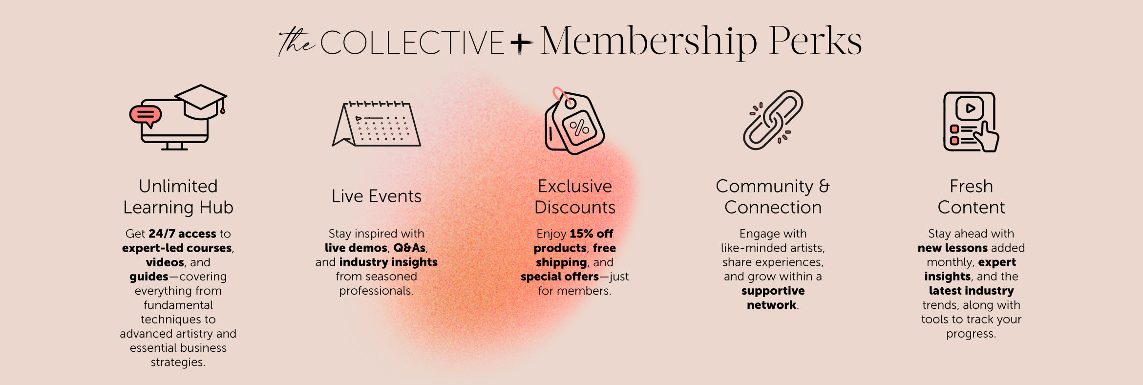This industry is always evolving, and artists need a trusted place to stay ahead. The Collective+ is an exclusive platform built for artists who want clarity, proven techniques, and ongoing education. With unlimited access to courses, live sessions, exclusive content, and product perks, artists can finally get the education they need while staying up-to-date—on their terms.