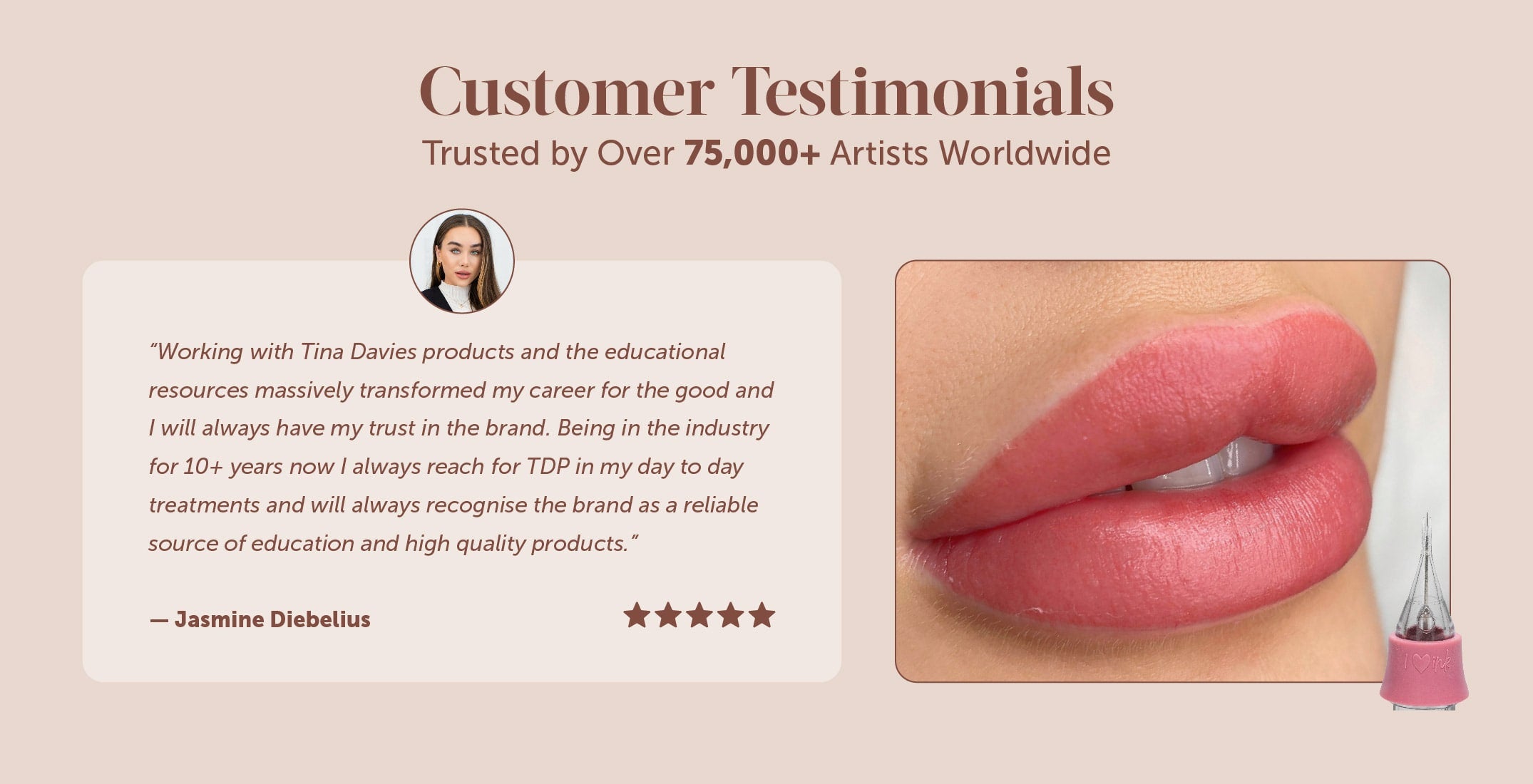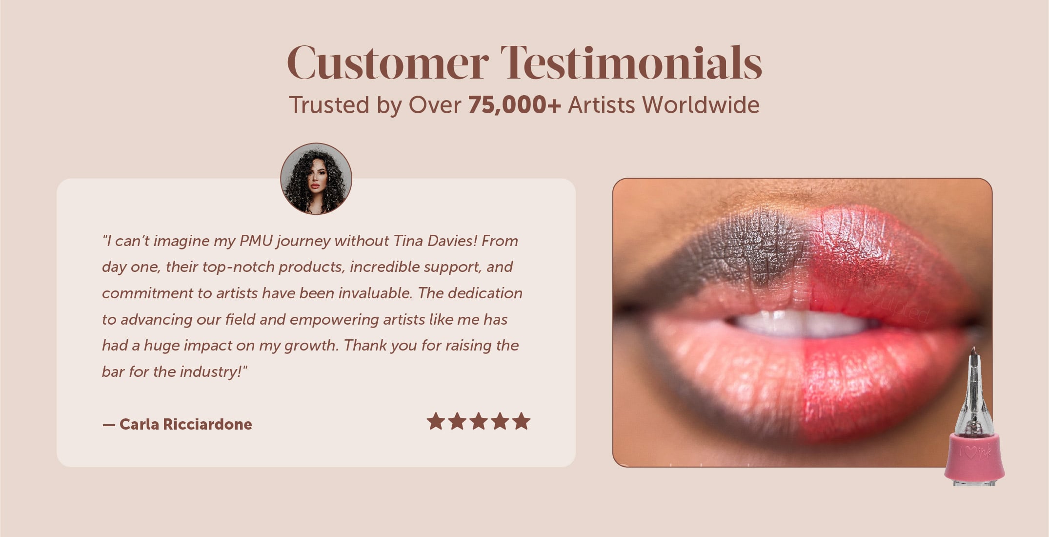 "With 20+ years as a PMU artist, I’ve witnessed the industry’s growth firsthand—from small beginnings to groundbreaking innovations. My passion for evolving and developing products comes from understanding client needs and my commitment to supporting artists. Today, I’m proud to offer accessible education, cutting-edge products, and unparalleled support to help every artist thrive."